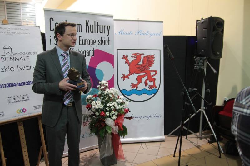 Wczoraj tj. 20 listopada br. w Centrum Kultury i Spotkań Europejskich w Białogardzie uroczyście wręczono statuetki mojego autorstwa dla artystów -laureatów II Białogardzkiego Biennale Artystycznego. Nagrody wręczali Burmistrz Białogardu Krzysztof Bagiński oraz Dyrektor CKiSE Paweł Wiśniewski.